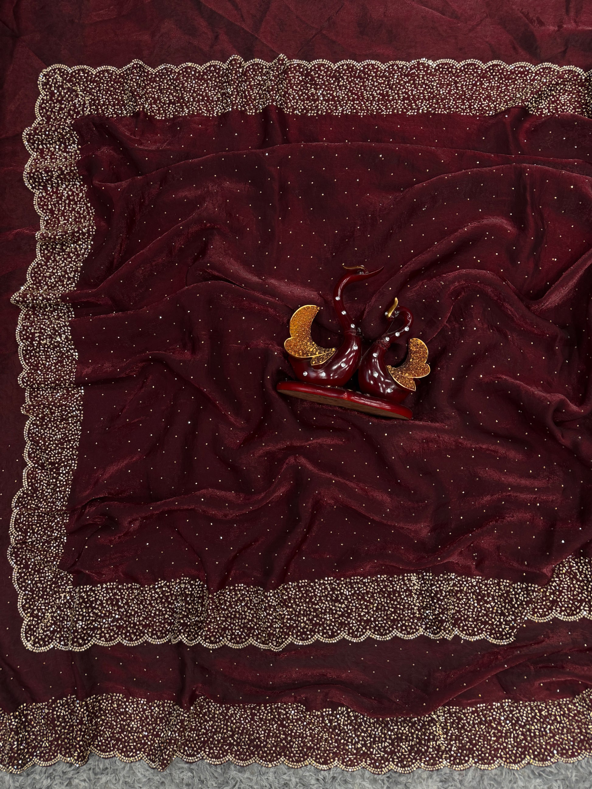 Saree: Soft Space Silk with original Jarkhan diamond work, handcrafted for a starry, vibrant look.