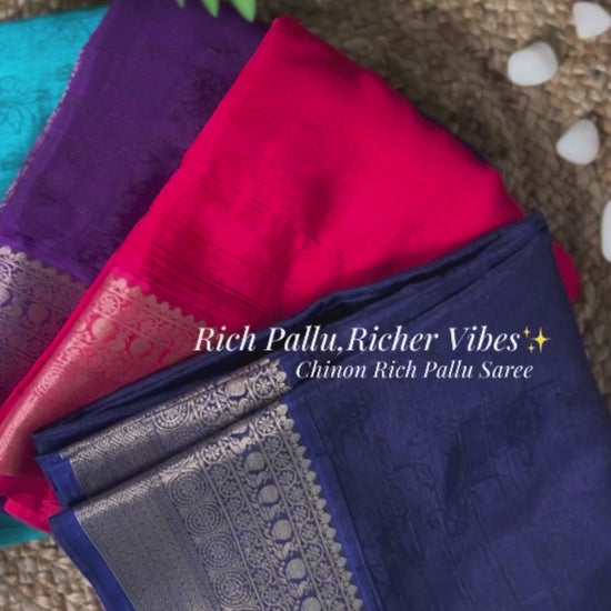 Saree: Chinon fabric with elegant Emboss Type self-print and rich zari weaving Pallu & Border
