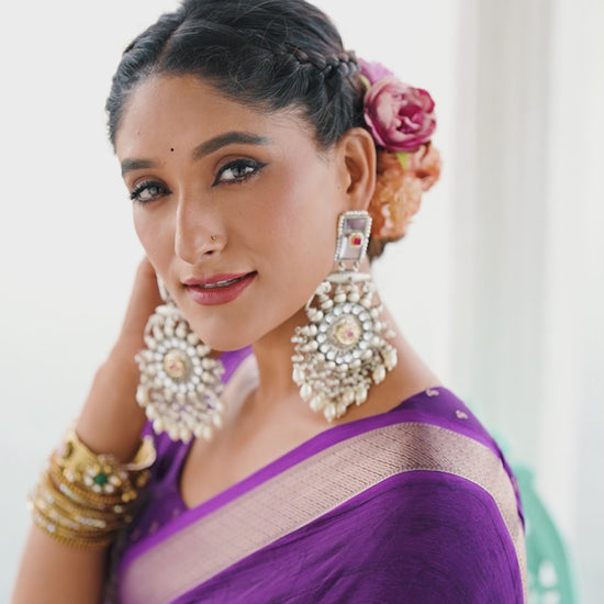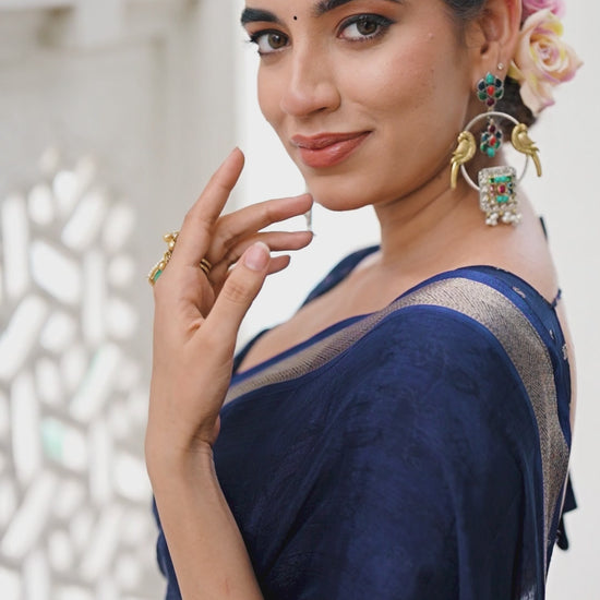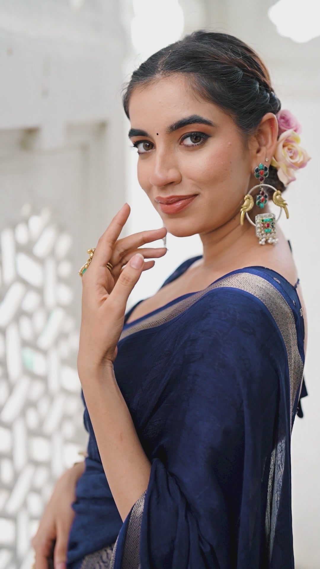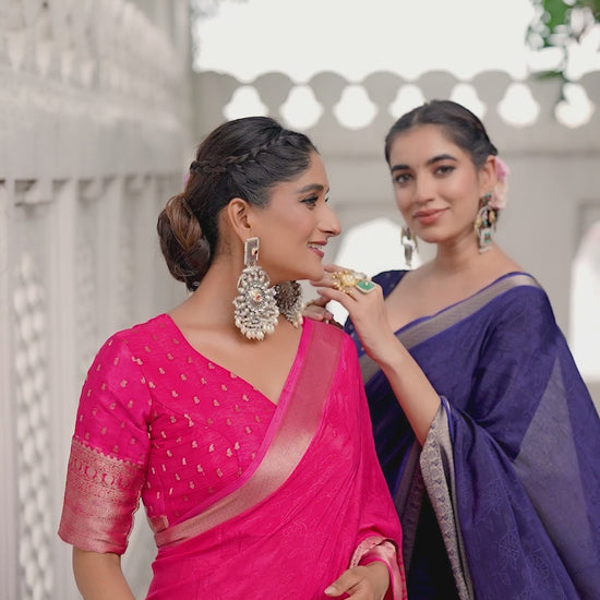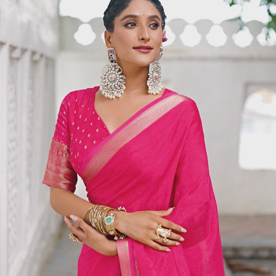 Saree: Chinon fabric with elegant Emboss Type self-print and rich zari weaving Pallu & Border