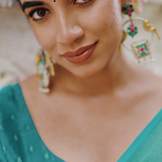 Blouse: Unstitched Chinon blouse with matching zari weaving,
